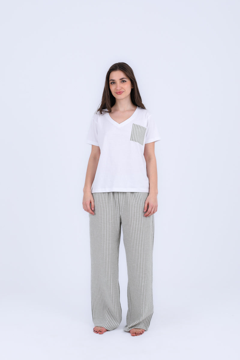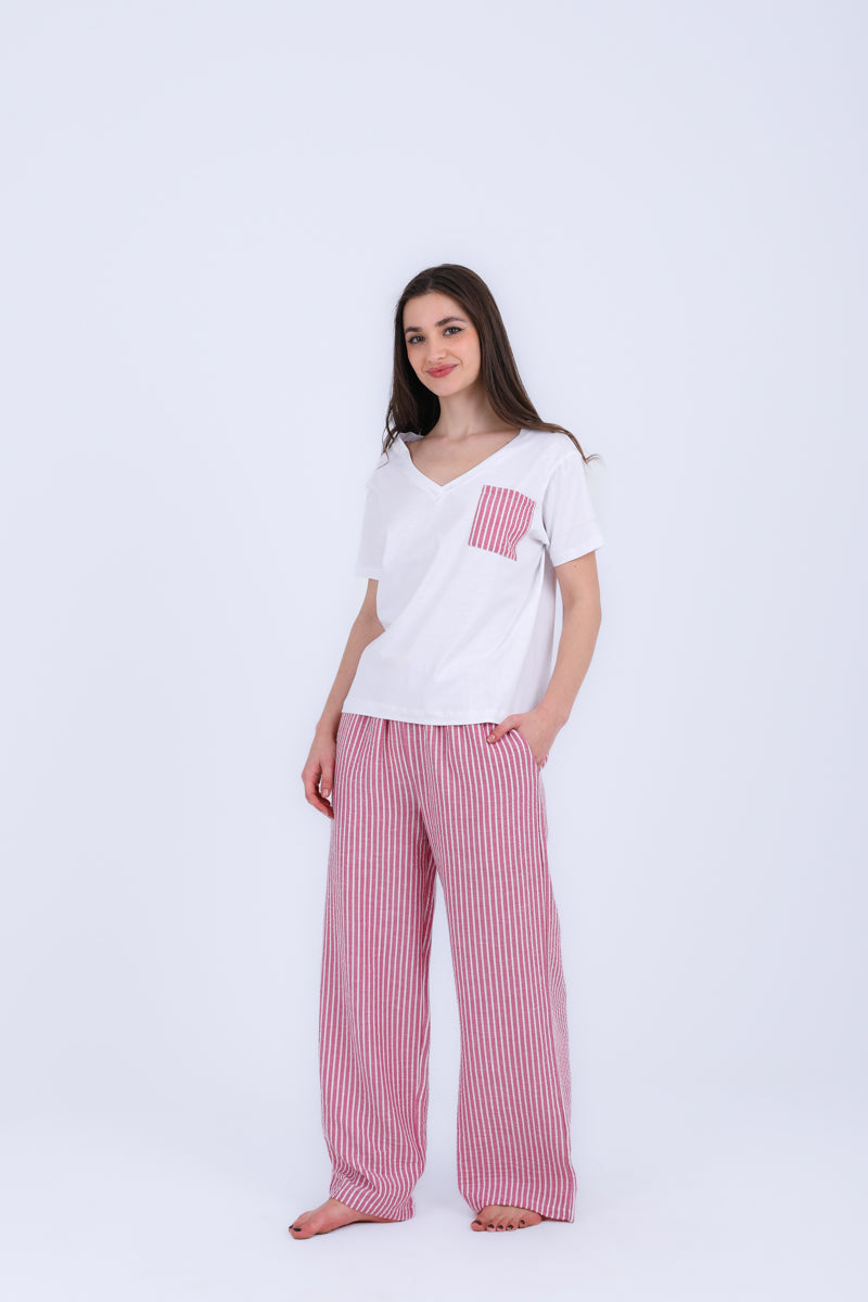 HS 103- Stripe Pants Comfort Pajama Set